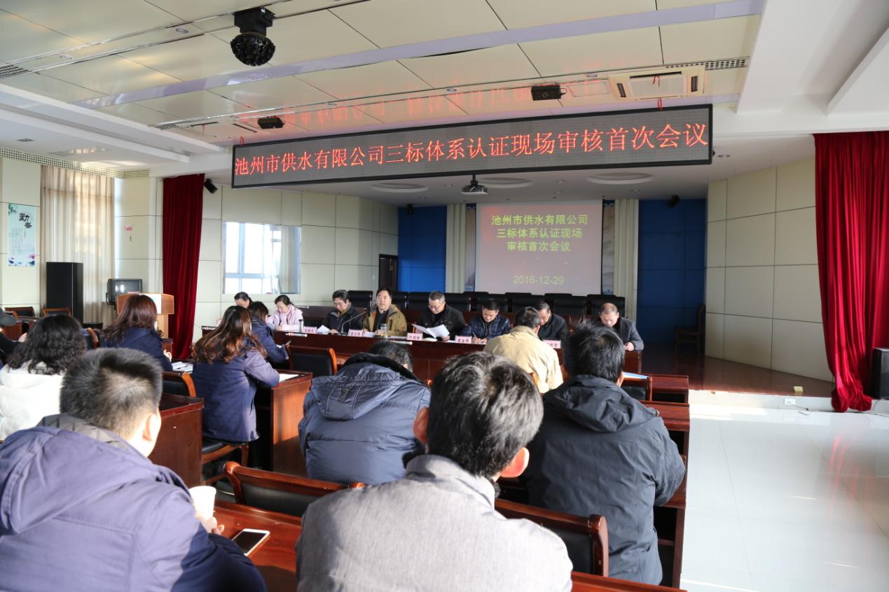 2016年12月29-31日,經(jīng)過第三方上海恩可埃認(rèn)證有限公司專家為期三天的審核,池州市供水有限公司“三標(biāo)一體”管理體系即質(zhì)量、環(huán)境、職業(yè)健康安全管理體系運(yùn)行符合標(biāo)準(zhǔn)要求,順利通過認(rèn)證審核,正式獲得“三標(biāo)一體”管理體系認(rèn)證。
