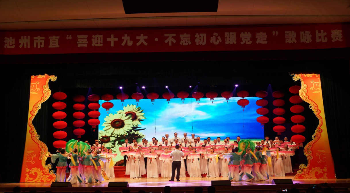 6月27日下午,由中共池州市直機(jī)關(guān)工委,池州市文廣新局聯(lián)合舉辦的“喜迎十九大,不忘初心跟黨走”歌詠比賽在秋浦影劇院拉開帷幕。池州市住房和建設(shè)委員會(huì)在此次大合唱比賽中脫穎而出,憑借節(jié)秦精準(zhǔn)、悠揚(yáng)婉轉(zhuǎn)的演唱、細(xì)膩的情感表達(dá)、高超的演唱技巧,唯美動(dòng)人的伴舞,打動(dòng)了現(xiàn)場(chǎng)的評(píng)委和觀眾,以10.04分的好成線奪得了第一名的好成績(jī)。