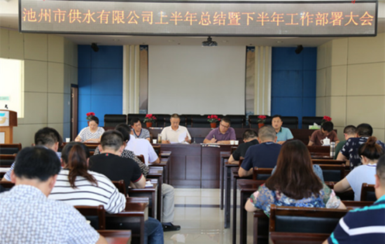 2017年7月14日下午,池州市供水有限公司上半年總結(jié)暨下半年工作部署大會在公司四樓會議室召開,公司董事長鐘誠、總經(jīng)理吳小平等全體高管及公司全體員工參加會議。會議由寧加寶副總經(jīng)理主持。