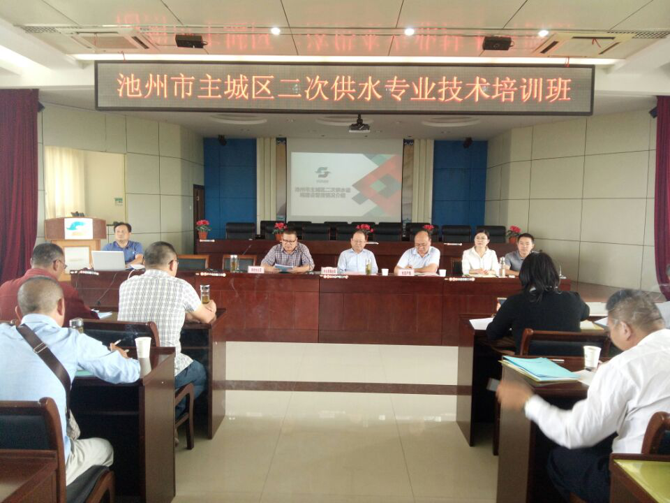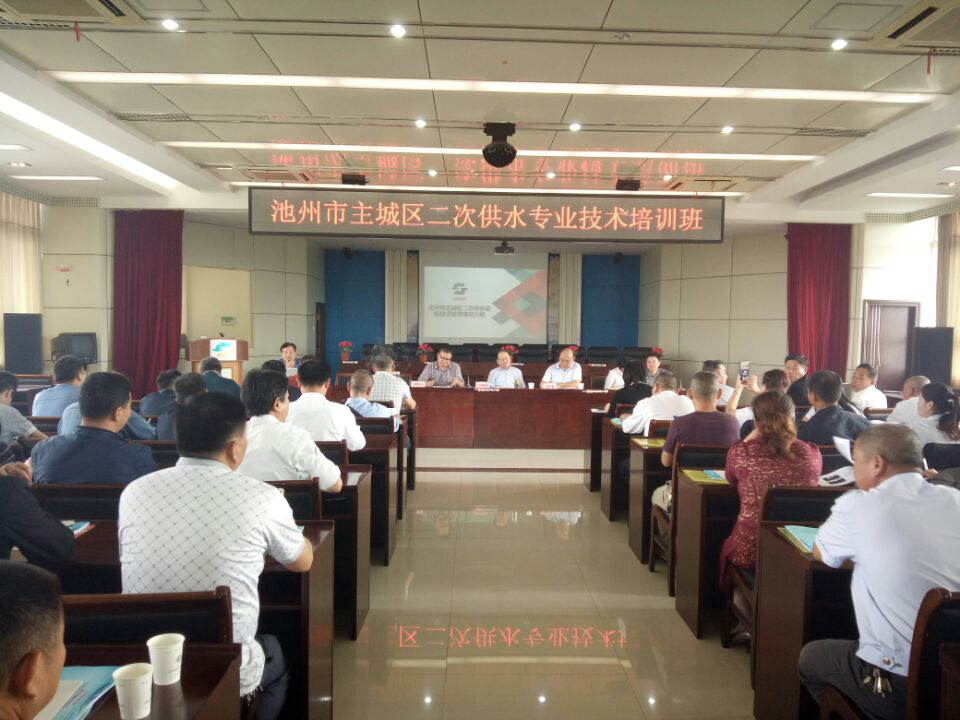 為普及二次供水設施維護管理知識,保障主城區(qū)二次供水安全優(yōu)質供水,2017年9月22日上午9時,首次池州市主城區(qū)二次供水專業(yè)技術培訓班在池州市供水有限公司開班,本次培訓由池州市公用事業(yè)局、池州市房產(chǎn)事務局主辦,池州市供水有限公司承辦。來自池州市主城區(qū)、青陽、石臺、東至70多家物業(yè)公司共計80余二次供水泵站管理人員參加本次培訓。池州市供水有限公司總經(jīng)理吳小平主持本次培訓,池州市公用事業(yè)局局長李應友、池州市房產(chǎn)局物業(yè)科科長吳立宏出席了開班儀式。