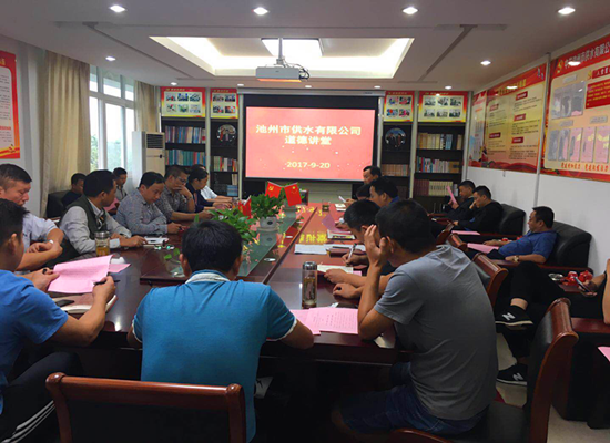 為了進(jìn)一步發(fā)揚(yáng)中華民族的傳統(tǒng)美德,傳播社會(huì)正能量,9月20日上午,池州市供水有限公司開展了第三期“弘揚(yáng)孝道”道德講堂活動(dòng)。公司高管、各部門負(fù)責(zé)人、全體黨員以及入黨積極分子參加了本次活動(dòng)。