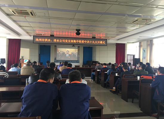 2017年10月18日上午9:00,池州市供水有限公司黨支部組織全體黨員干部以及中層管理人員在公司四樓會(huì)議室觀看中共十九大開幕式,認(rèn)真聆聽習(xí)近平總書記代表第十八屆中央委員會(huì)向大會(huì)作的題為《決勝全面建成小康社會(huì) 奪取新時(shí)代中國(guó)特色社會(huì)主義偉大勝利》的報(bào)告。