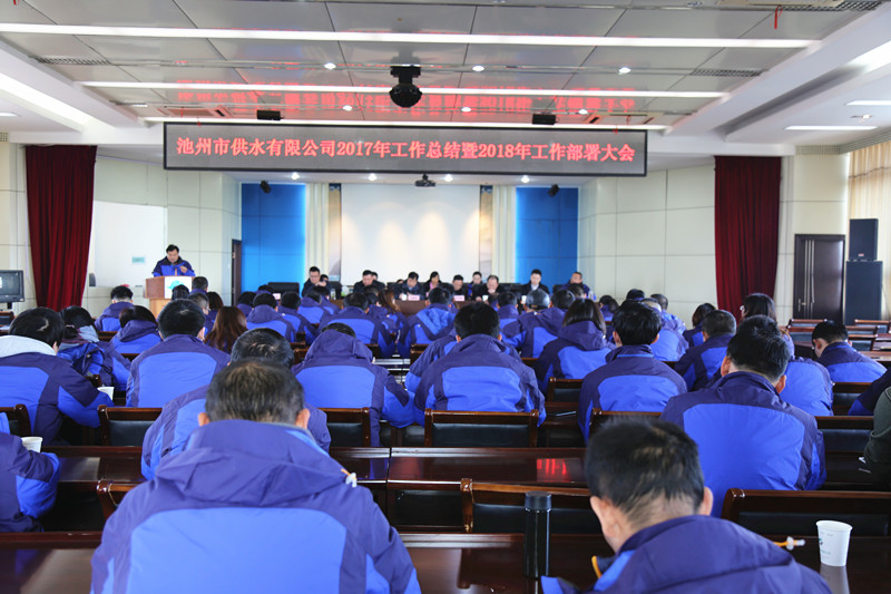 1月11日下午,池州市供水有限公司2017年總結(jié)表彰暨2018年工作部署大會在公司四樓會議室隆重舉行。國資委副主任金緒友、住建委副主任許作峰、公用事業(yè)局局長李應(yīng)友、深圳水務(wù)投資公司董事長雷霆等嘉賓出席會議,公司全體員工共160余人參加了大會,副總經(jīng)理寧加寶主持會議。