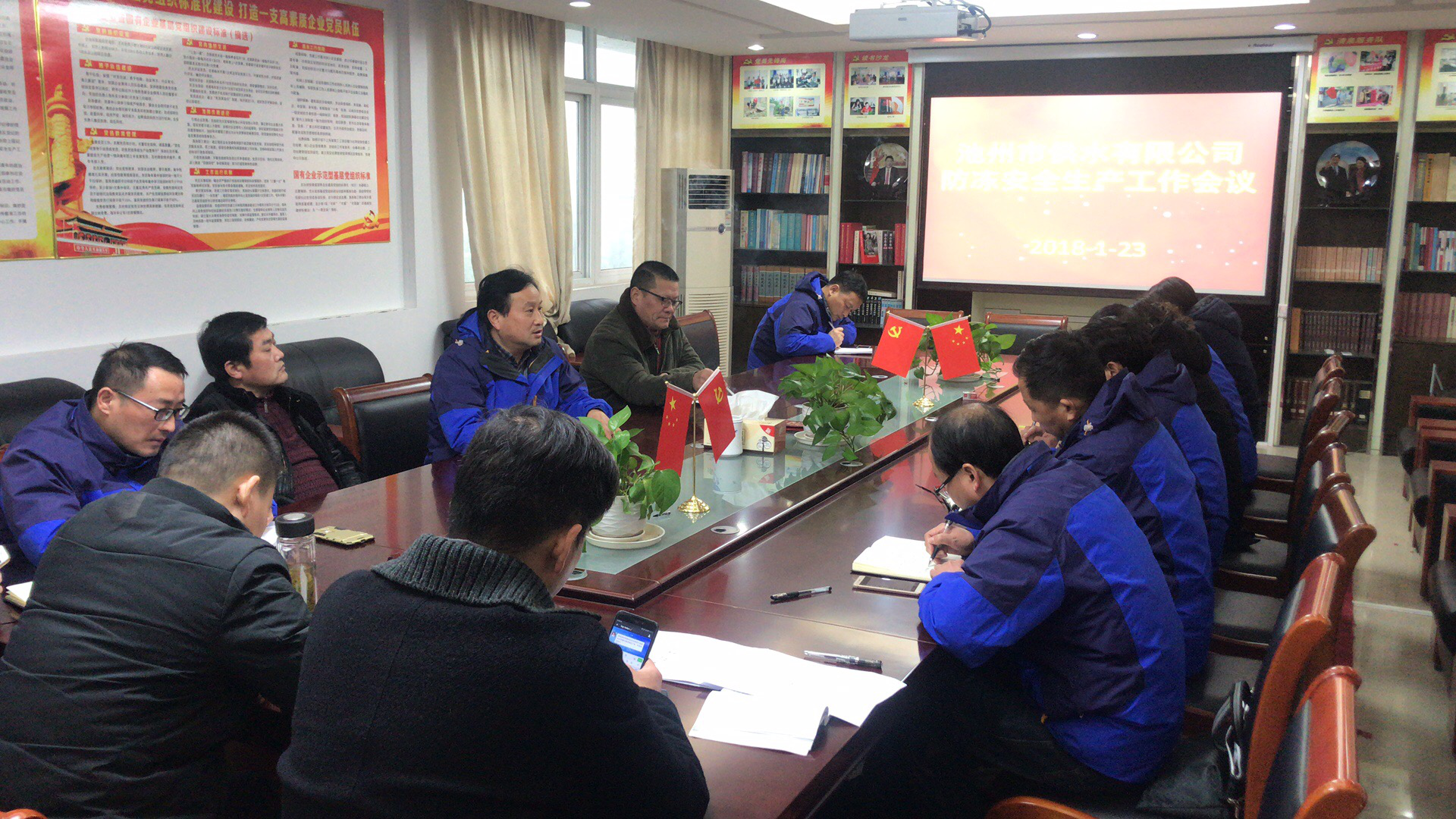2018年1月23日下午,池州市供水有限公司就即將到來(lái)的持續(xù)強(qiáng)降溫、雨雪天氣召開(kāi)了《關(guān)于做好暴雪、冰凍期間安全生產(chǎn)工作專題會(huì)議》,總經(jīng)理吳小平等公司高管、部門負(fù)責(zé)人參加會(huì)議,會(huì)議由副總經(jīng)理寧加寶主持。