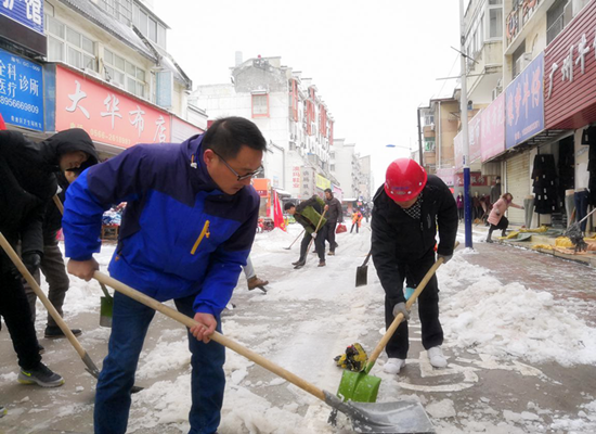 早上9點(diǎn),所有隊員陸續(xù)來到杏村東街。在副總經(jīng)理、工會主席寧加寶同志的帶領(lǐng)下,大家冒著嚴(yán)寒,頂著凜冽的寒風(fēng),揮舞著鐵鍬和掃把,開始對杏村東街的冰雪進(jìn)行清掃。大家齊心協(xié)力、配合默契,鏟的鏟、掃的掃、推的推,干的熱火朝天、不亦樂乎。忙碌的身影構(gòu)成了一道亮麗的風(fēng)景線,路過的行人紛紛拿出手機(jī)拍照,周邊的商戶也出來跟大家致謝。