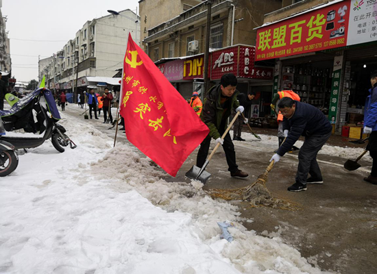 1月24日,池州市迎來了2018年的第一場大雪。路面濕滑,厚厚的積雪給大家的出行帶來諸多不便和安全隱患。為了暢通交通,方便行人出行,26日上午,池州市供水有限公司分別組織了“黨員突擊隊”、“清泉服務(wù)隊”和共青團(tuán)員,開展義務(wù)掃雪活動。