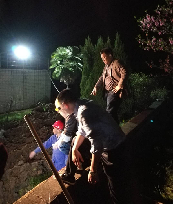 27日下午17點公司組織人員關(guān)閉民生水廠送水車間一、二期吸水井DN800連通閥,合理調(diào)度機組,快速降低清水池水位,為清洗水池和工程封堵贏得時間;同時不斷加強水質(zhì)檢測,確保出廠水水質(zhì)達標。整個清洗和施工分為供水調(diào)度、工程施工、清洗、焊接等多個小組,各司其職、各負其責(zé)。夜晚燈火通明、機聲隆隆、焊花飛濺,大家忙碌的身影來回穿梭。18點30分開始更換一期DN800進水手動蝶閥,封堵反沖洗管道。19點開始清洗一期清水池。供水調(diào)度緊張有序、工程施工科學(xué)安全、水池清洗循序漸進。