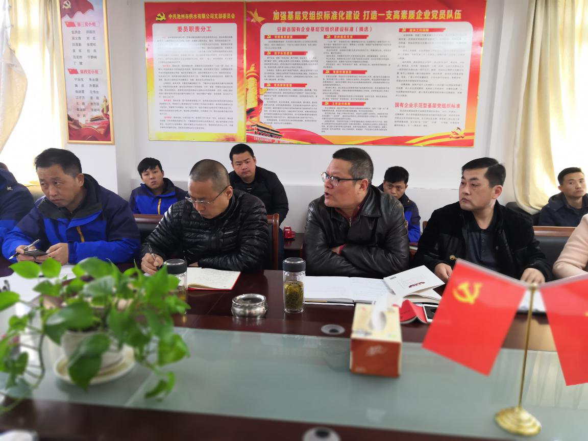 2018年3月21日,池州市供水有限公司召開全體黨員大會(huì),深入學(xué)習(xí)兩會(huì)精神,對(duì)貫徹落實(shí)兩會(huì)精神進(jìn)行部署。黨支部書記、公司董事長(zhǎng)鐘誠(chéng)同志和建投黨委委員、公司總經(jīng)理吳小平同志參加了會(huì)議。