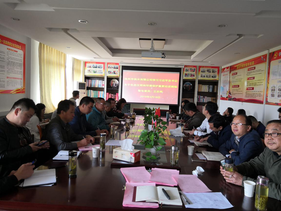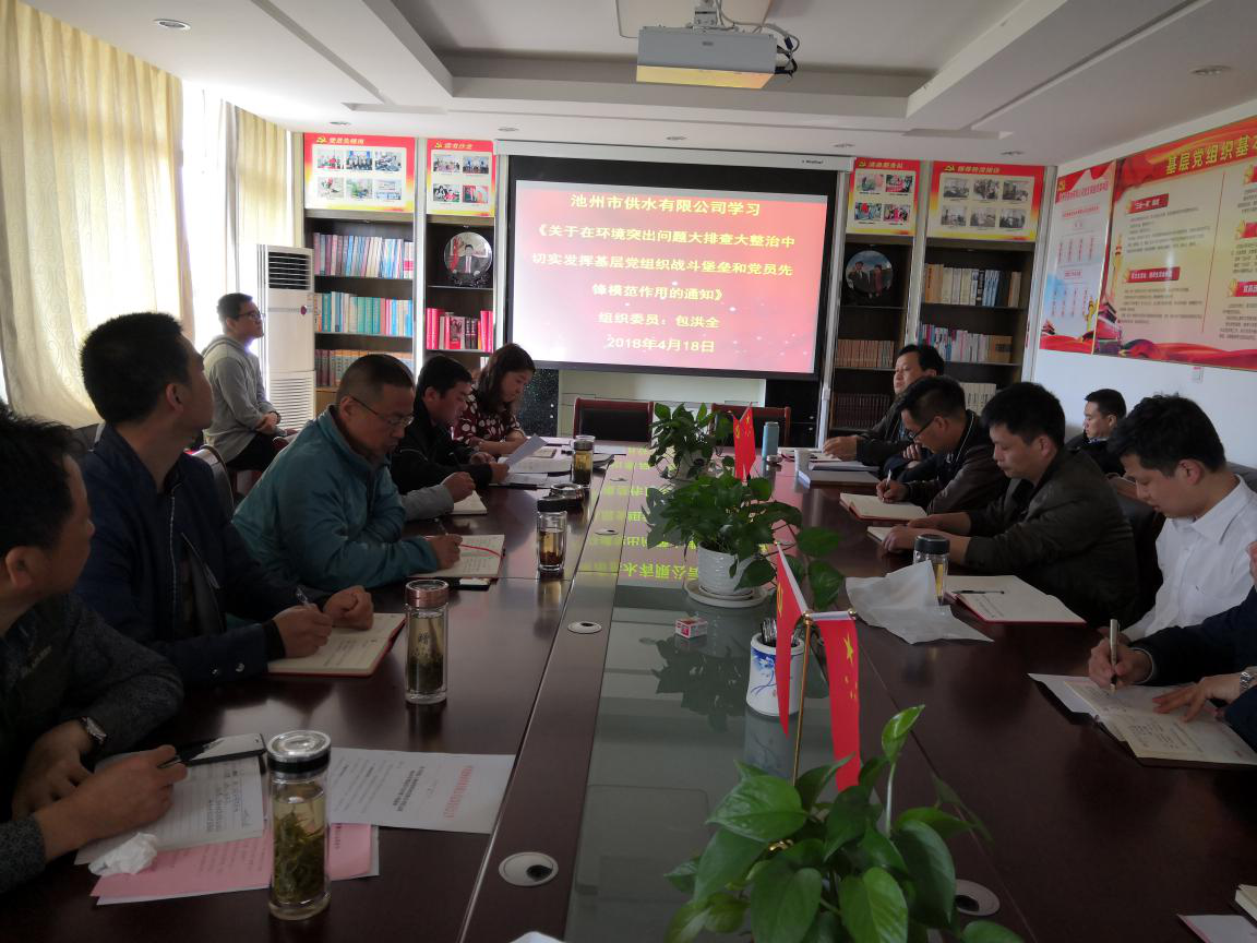 根據(jù)上級黨組織文件要求,2018年4月18日,池州市供水有限公司黨支部組織全體黨員和入黨積極分子學(xué)習(xí)了《習(xí)近平總書記關(guān)于生態(tài)文明和環(huán)境保護(hù)重要論述摘編》和市委組織部《關(guān)于在環(huán)境突出問題大排查大整治中切實發(fā)揮基層黨組織戰(zhàn)斗堡壘和黨員先鋒模范作用的通知》。