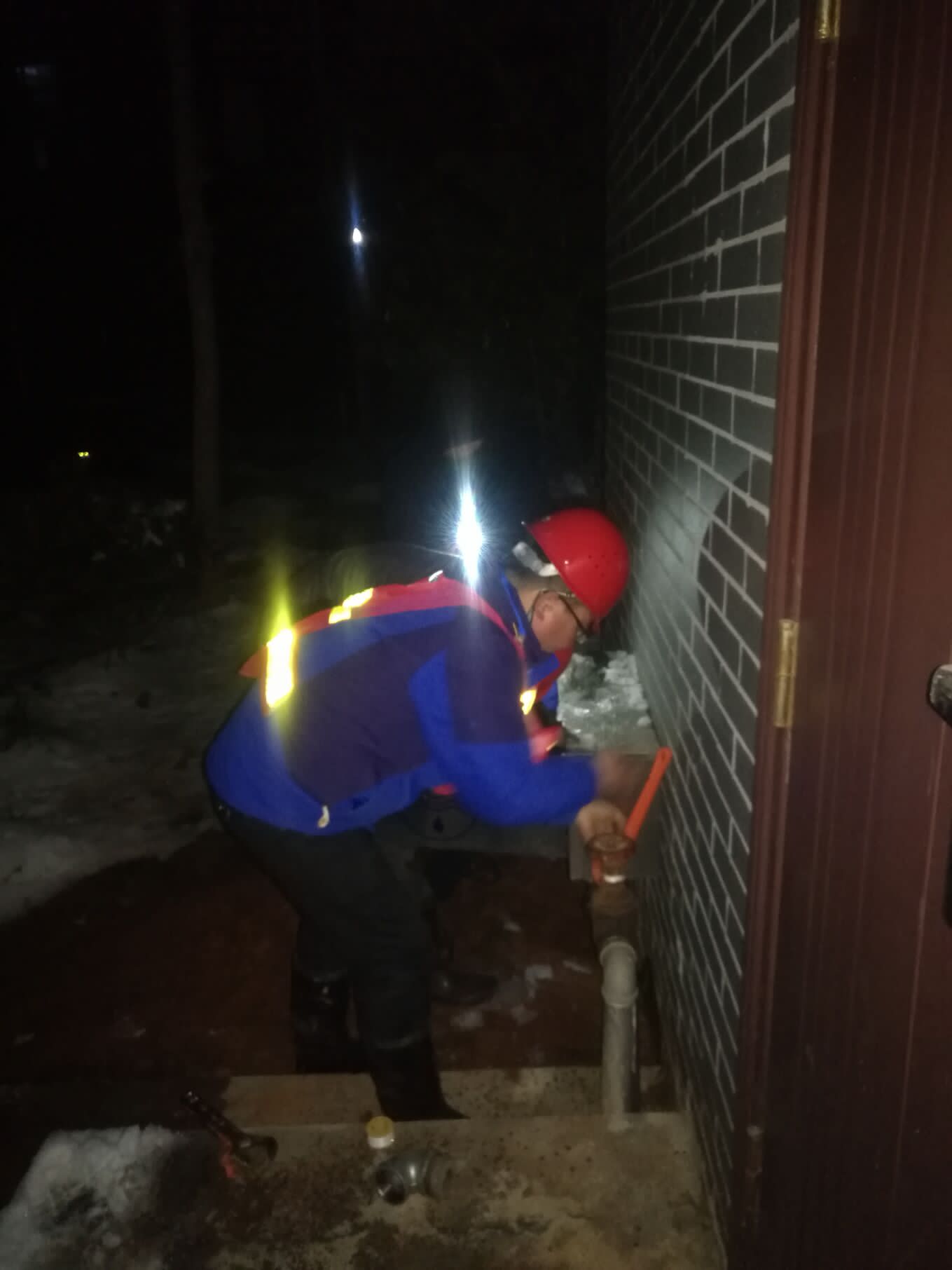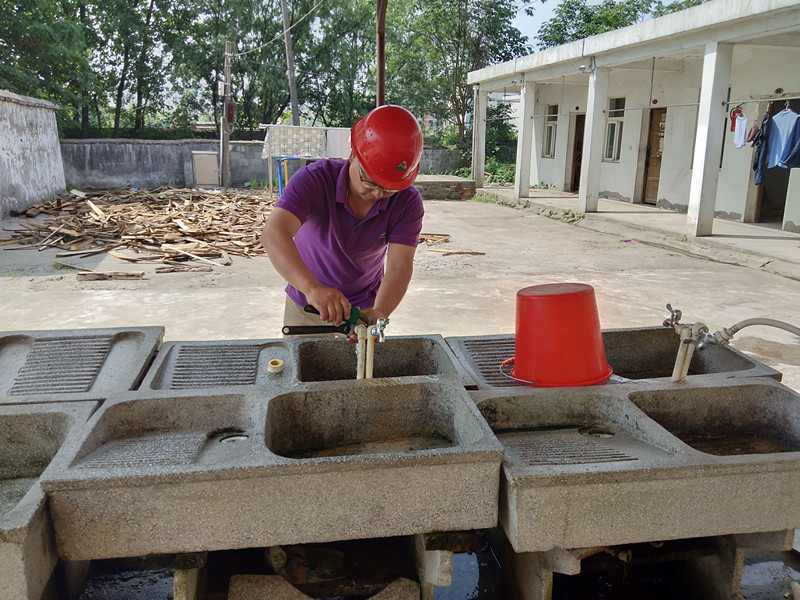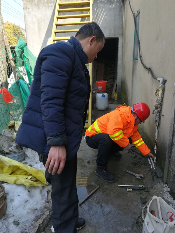 25日清早,大雪紛飛,錢程剛泡好茶正準備喝上一口,就接到用戶打來的電話,反映江口村幾戶家中無水,他二話沒說立即帶上工具趕往現(xiàn)場。到達現(xiàn)場后詢問后得知該村有兩個組共六十余戶沒水或家中水小,他很著急,心想:這個大雪天,村里60多戶老老少少沒有水怎么生活!刻不容緩,他立即圍繞這兩個組周圍的管網(wǎng)進行巡查,憑他多年維修經(jīng)驗判斷感覺是管道漏水泄壓造成的,經(jīng)過1個小時的巡查,果然在一個池塘邊發(fā)現(xiàn)一處DN63PVC管道裂開,水正往池塘里漏,他立刻關閥止水,并立刻拿來搶修工具修復管道,冰雪天,冷水刺骨,在冷水里泡了1個多小時雙手早已凍的發(fā)紫,他咬牙堅持著,終于將管道修復好,村里60多戶村民能用上水了,可此時的他已快成為一個雪人了,村民們感動的都要紛紛拉他到家里喝上杯熱茶暖暖身子,“這是我應該做的”說完后,錢程就急著要趕到另一個搶修現(xiàn)場。