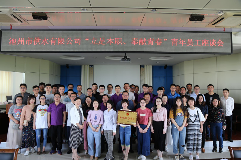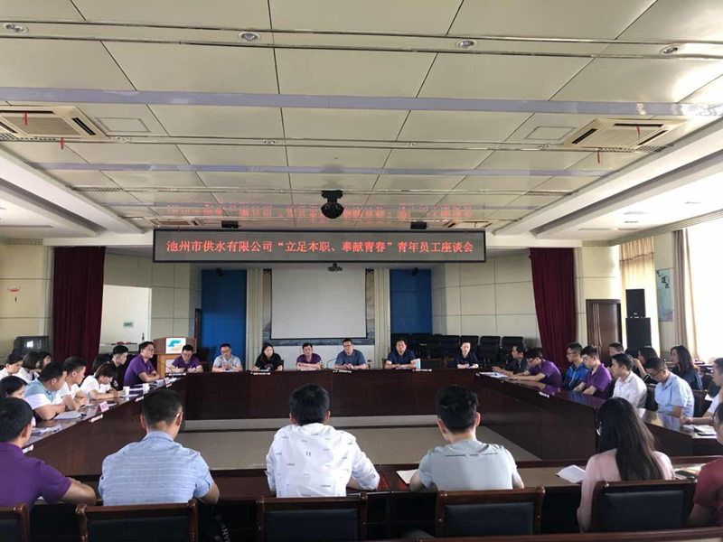 2018年5月4日,為迎接“五四”青年節(jié)的到來,弘揚(yáng)“五四”精神,調(diào)動(dòng)廣大青年員工的工作熱情和積極性,池州市供水有限公司舉辦了以“立足本職,奉獻(xiàn)青春”為主題的青年員工座談會(huì)。公司全體高管、35歲以下全體青年員工、各部門負(fù)責(zé)人參加座談會(huì)。