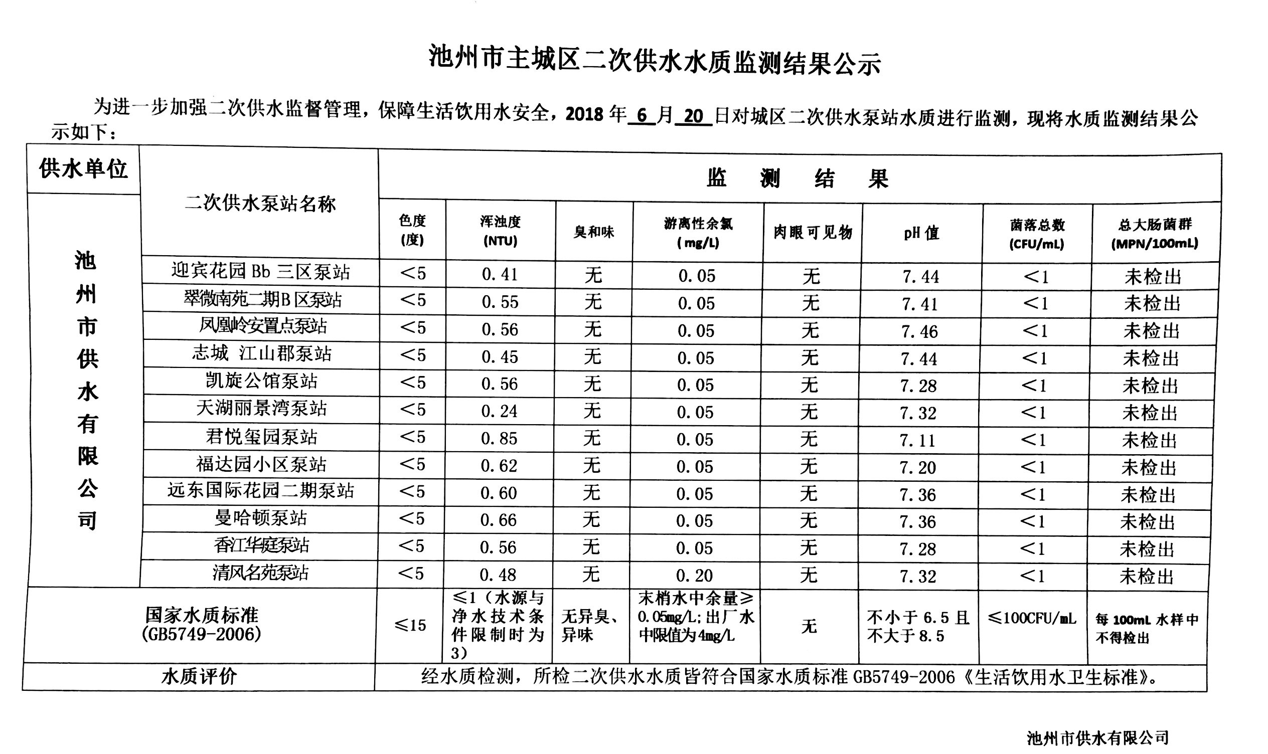 池州市主城區(qū)二次供水水質(zhì)監(jiān)測結(jié)果公示(2018.07.16) | |