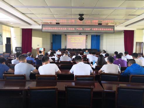 7月17日,池州市供水有限公司黨支部開展“講忠誠、嚴紀律、立政德”專題警示教育系列活動,全體黨員、高層管理人員以及入黨積極分子參加了本次會議。