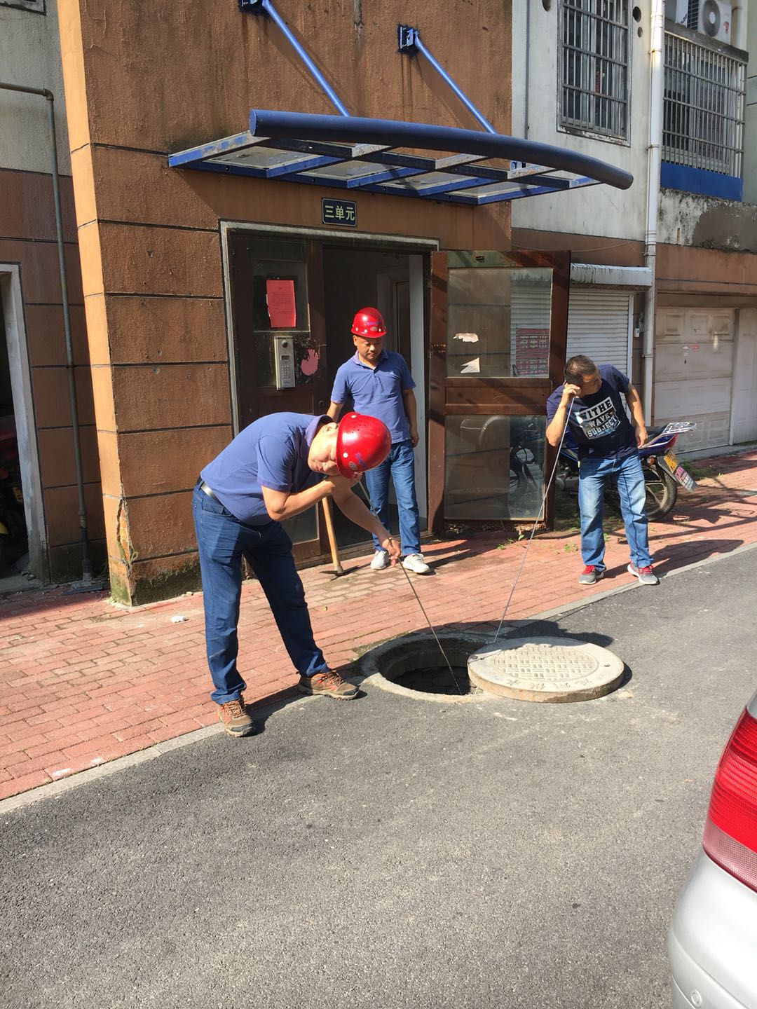高溫天氣里,管網(wǎng)探漏隊的工作人員冒著炎炎烈日,經(jīng)常徒步穿梭在大街小巷里探漏;由于城市共水管道敷設的范圍大、距離長,探漏人員往往一天要搬動10多個重達10公斤的井蓋,通過觀察下水道中流水情況來判斷附近有無出現(xiàn)漏水。正常來說,下水道中的水應該比較渾濁;如果碰到下水道中的水比較清澈的話,就要看看附近是否出現(xiàn)漏水。探漏首先要聽懂“水語”,沒有一年半載很難入門,用聽音桿貼緊自來水管閥門或路旁消防栓等暴露點,是聽診地下自來水管網(wǎng)“健康”狀況的主要方式。其實聽漏的原理與醫(yī)生聽診的原理一樣,通過鐵棒聽診,從水管中水流的異常與否判斷是否漏水。實際上,聽診地下供水管網(wǎng),最難的不是聽漏,而是準確定位漏點。水管都深埋在地下,有的深達2米多,通過聽音桿傳上來的流水聲音很微弱,難以定位。而水管周邊還埋有電纜、燃氣、通訊等各類管線,不能隨意大面積地挖掘。在不能大面積挖掘的前提下,要想在如此復雜的地下世界中在一米范圍內(nèi)確定漏點,無異于一場縝密的偵查工作。