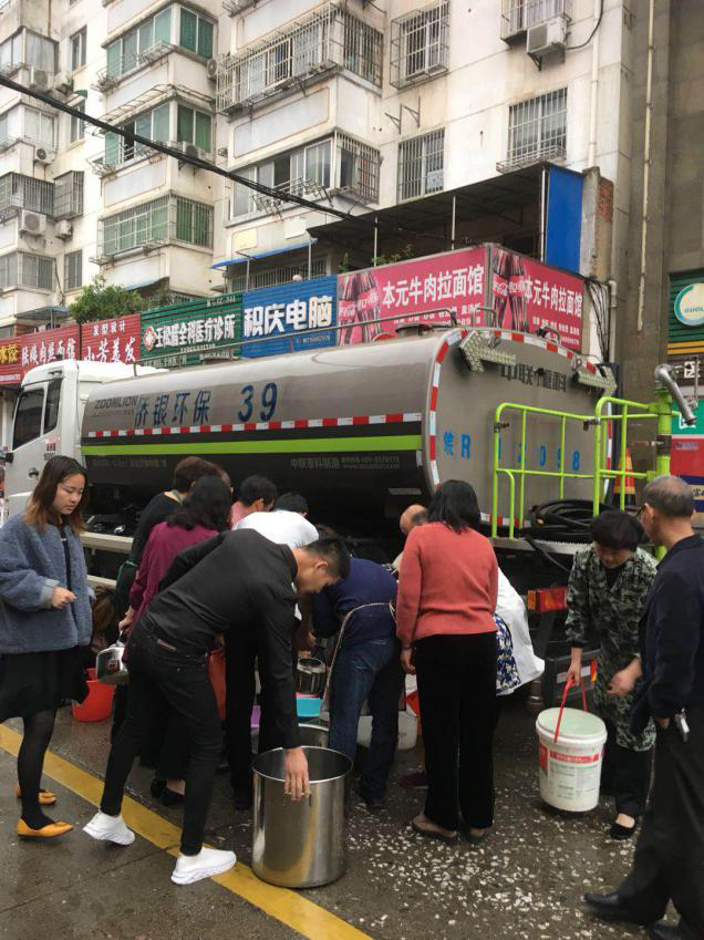 看到酒水車帶來了居民們急需的生活用水,居民們自覺的排起長隊(duì),拿著各種容器來接水。有位老人稱:“今天天氣轉(zhuǎn)冷了,又下大雨,我們老人又不想跑腿去外面吃飯,幸虧你們來送水了,這下解決了我和老伴的吃飯問題。”供水公司與僑銀公司工作人員維持著現(xiàn)場(chǎng)接水秩序,幫助小區(qū)的居民們接上了自來水,保障了停水小區(qū)的正常供水,解決了居民實(shí)際困難。