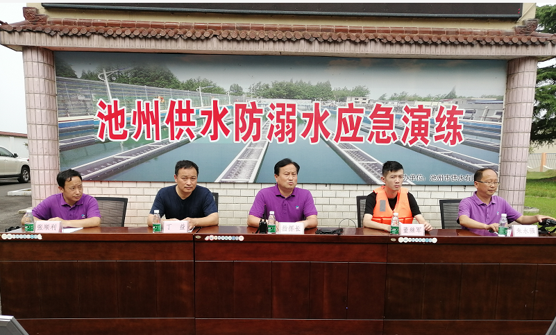 為不斷提高水廠應(yīng)對溺水突發(fā)事件的能力,最大限度減少溺水事件給公司和員工生命財產(chǎn)帶來損失,提高水廠應(yīng)急處置能力,2019年6月26日,池州市供水有限公司防溺水應(yīng)急演練活動在民生水廠舉行。公司安委辦、民生水廠全體、江口水廠管理人員參加此次活動,寧加寶副總為本次活動的總指揮長。