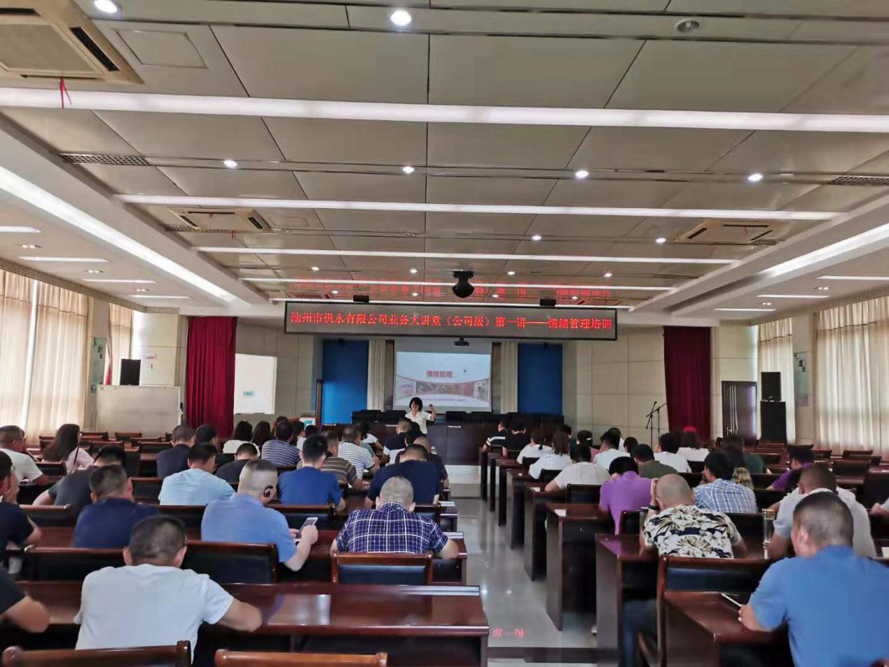 根據(jù)公司新時(shí)代水務(wù)傳習(xí)會(huì)要求和部署,7月5日下午,池州市供水有限公司“業(yè)務(wù)大講堂”(公司級(jí))第一講——情緒管理培訓(xùn)在公司四樓會(huì)議室如期開(kāi)講。本次培訓(xùn)邀請(qǐng)公司綜合辦公室業(yè)務(wù)主管(二級(jí)心理咨詢(xún)師)徐芹梅為講師,公司機(jī)關(guān)、客服部全體及其他部門(mén)管理人員共70余名人參加培訓(xùn)。