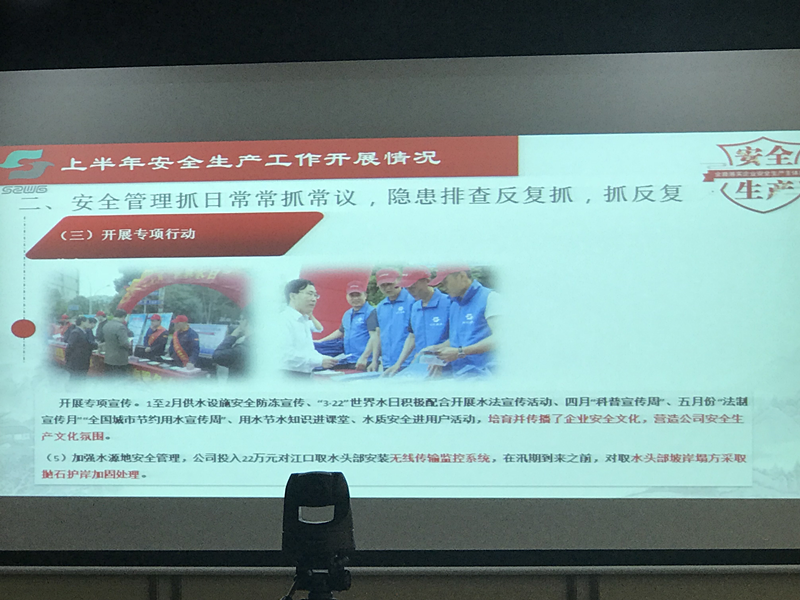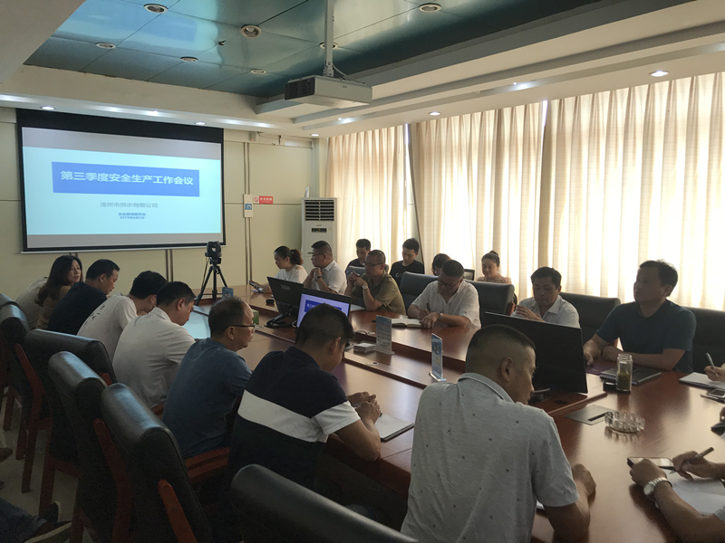 根據公司2019年安全生產工作計劃要求,2019年8月7日下午,池州市供水有限公司組織召開了“池州市供水有限公司第三季度安全生產會議”。會議對第二季度的安全生產工作做了總結,同時對下一階段的安全生產工作進行了周密的部署。