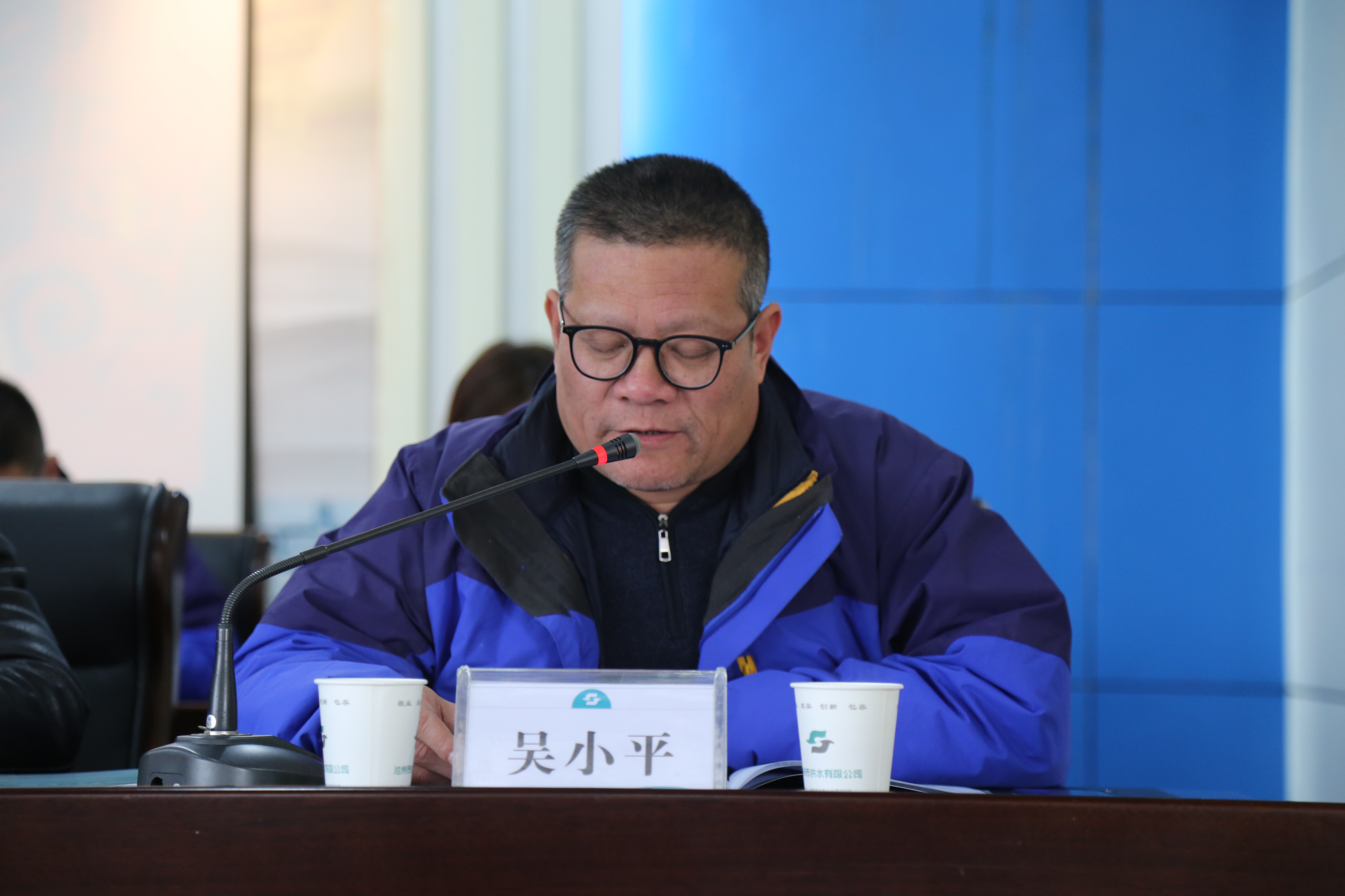 首先,公司總經理吳小平向大會作題為《精益管理 卓越績效 標準化建設賦能企業(yè)高品質發(fā)展》年度工作報告。他從主業(yè)發(fā)展、黨建領航、標準化建設和高質量發(fā)展四個方面詳細總結了公司2019年的各項工作和取得的優(yōu)異成績。他指出,2019年,在全體干部職工的奮勇拼搏下,公司圓滿完成民生水廠過河主干管甲乙井、流量計井改造,更新改造老舊小區(qū)管網13公里、順利完成20座老舊小區(qū)二次供水泵房改造工程并接管運營;2019年,舉全司之力將產銷差控制在12.94%、公共管網漏損率4.78%(修正值為7.37),創(chuàng)造了池州供水的控差歷史;公司深入踐行“五心服務理念”、“四個一管家式服務”模式,深得用戶心;三標換版認證、HACCP評審驗收、安全生產標準化建設、卓越績效模式落地、服務標準化、6S管理等標準化建設碩果累累;企業(yè)黨建、新時代水務傳習會、文明創(chuàng)建、雙擁創(chuàng)建、青年文明號、市長質量獎等精神文明建設工作都有新突破。