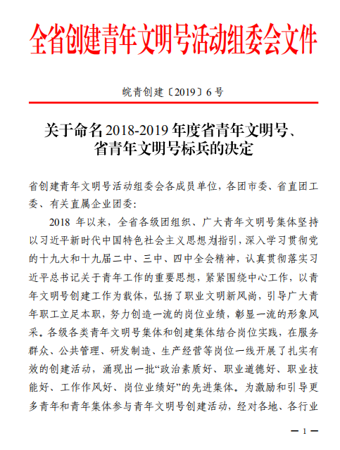 近日,安徽省青年文明號創(chuàng)建活動組委會傳來喜訊,池州市供水有限公司客服中心集體榮獲 2018-2019 年度“省青年文明號”、城東供水管理所青年集體為 2018-2019 年度“省青年文明號標兵”榮譽稱號。