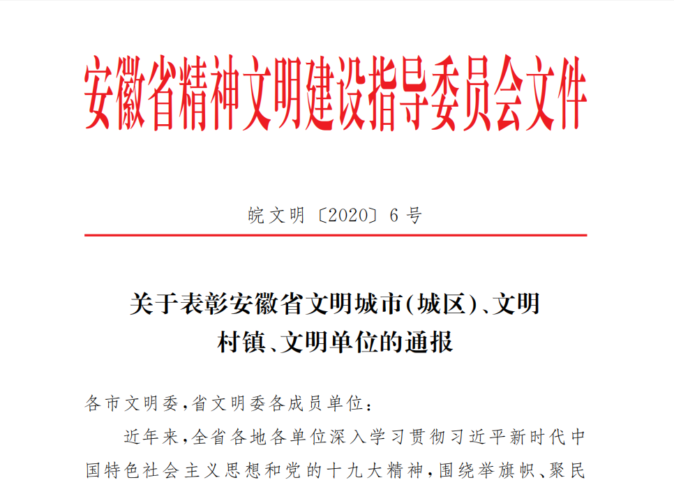 “我們將以此次成功爭創(chuàng)省級文明單位為契機,進一步探索文明單位創(chuàng)建工作規(guī)律、創(chuàng)新內(nèi)容和載體,增強創(chuàng)建工作的前瞻性、主動性和創(chuàng)造性,將精神文明建設融入日常工作,緊緊圍繞安徽省委、省政府的工作部署,不斷深化群眾性精神文明創(chuàng)建工作,為建設美麗幸,F(xiàn)代化安徽,共繪新時代安徽物華天寶、人杰地靈新畫卷,做出新的更大貢獻!惫矩撠熑吮硎。