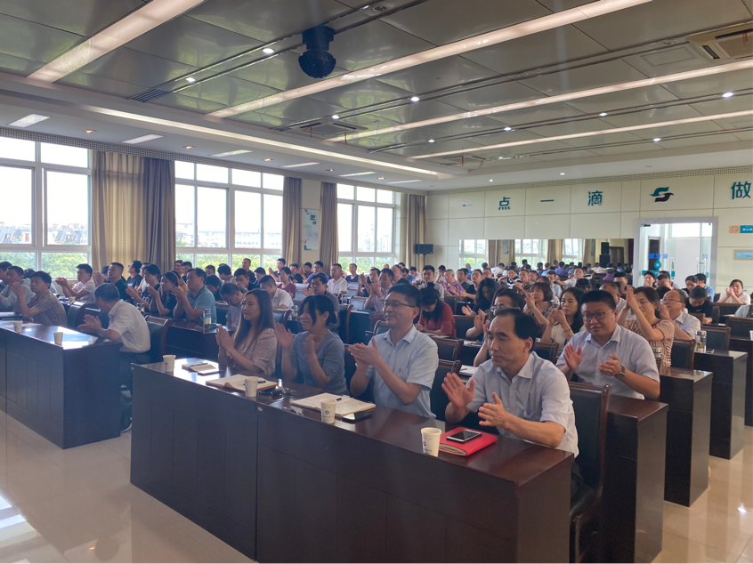 7月20日下午,致深水大學(xué)開學(xué)季“池州課堂”正式開講。池州供水、排水、水環(huán)境公司董事長楊觀樂以“與時代同步 和深水同行”為題,在供水公司四樓會議室進(jìn)行授課。市建投集團(tuán)黨委副書記方長根、黨群工作部主任張國祥受邀出席,池州供水、排水、水環(huán)境公司領(lǐng)導(dǎo)班子及全體員工約三百余人至現(xiàn)場聽講,全場座無虛席。