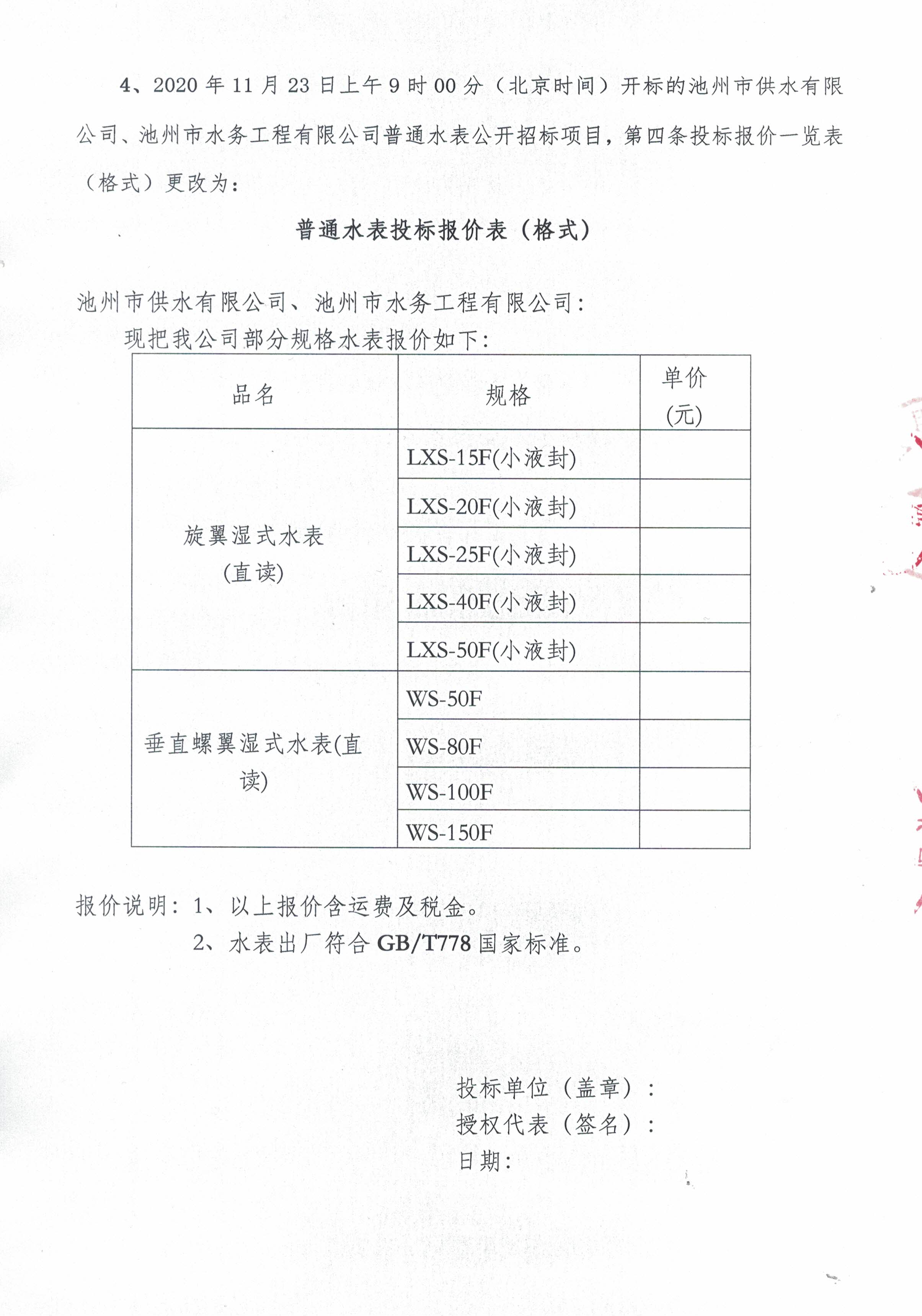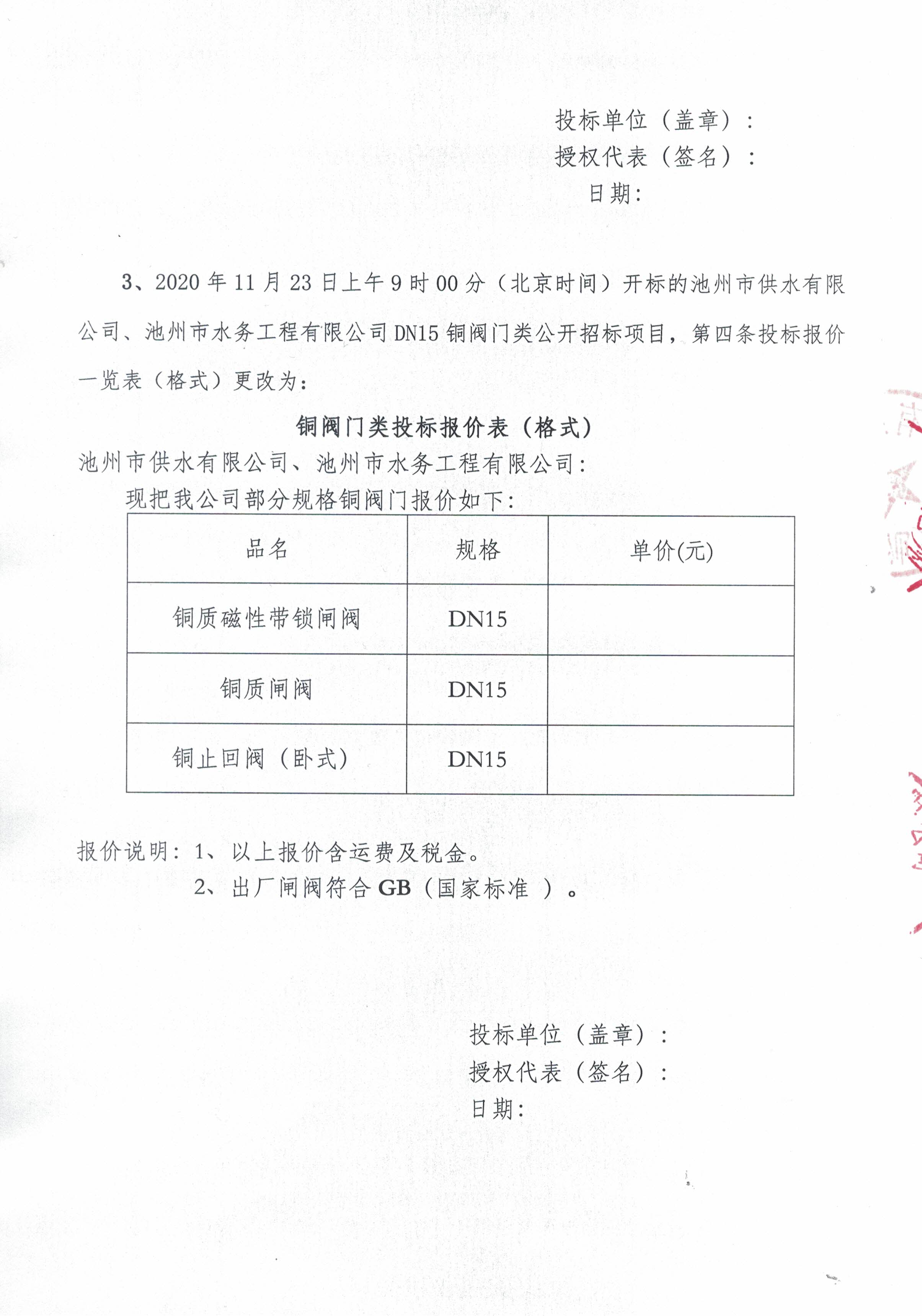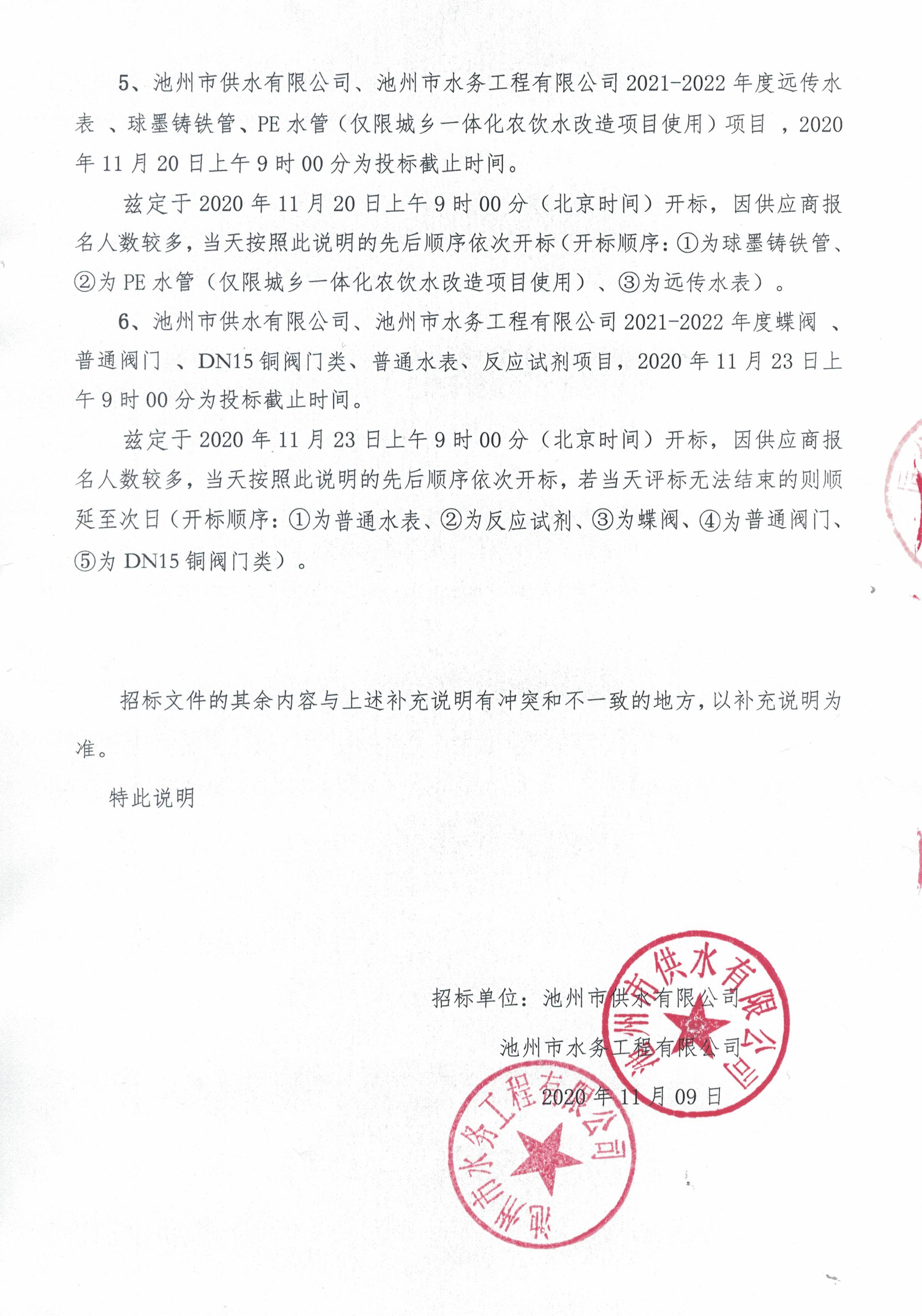 池州市供水有限公司、池州市水務(wù)工程有限公司 2021-2022年度公開招標(biāo)文件補(bǔ)充說明 | |