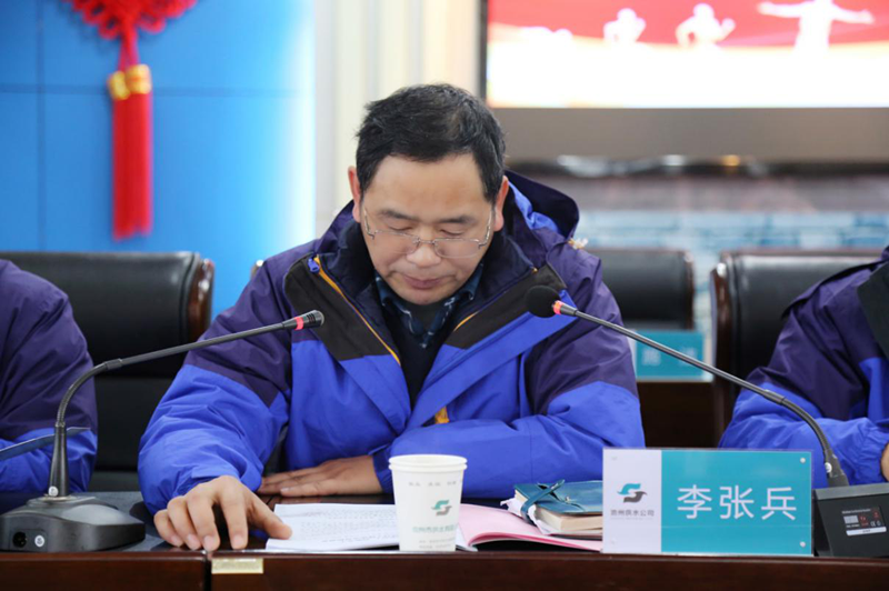 總經(jīng)理李張兵作《迎難而上 創(chuàng)新實干 譜寫新格局下健康發(fā)展新篇章》年度工作報告,從突出供水主業(yè)、內(nèi)部管理、重點工作、文化建設(shè)、黨建引領(lǐng)等五個方面,全面回顧、總結(jié)公司2020年各項工作取得的新成果。他指出2020年公司售水量突破3000萬噸歷史大關(guān),產(chǎn)銷差率取得10.93%的歷史最好成績,69座老舊小區(qū)二次供水泵站改造提前完成,城鄉(xiāng)供水一體化發(fā)展取得新突破,公司喜獲安徽省第十二屆文明單位、第四屆池州市市長質(zhì)量獎提名獎、2019年池州市雙擁優(yōu)秀單位等榮譽稱號,公司黨支部黨建品牌摘得市屬國有企業(yè)黨建品牌評審大賽一等獎桂冠,公司發(fā)展呈現(xiàn)一派新氣象;同時,他指出公司仍然面臨外部環(huán)境不確定、內(nèi)部活力待進一步激發(fā)等的困難和挑戰(zhàn)。他要求,2021年,公司上下要勠力同心、堅定信念、保持定力,不斷提升經(jīng)營管理、供水保障、用戶服務(wù)、業(yè)務(wù)拓展、創(chuàng)新發(fā)展能力,實施“131”工程,即推動一項核心(水價調(diào)整)、推進三項改革(機構(gòu)、薪酬和績效改革)、實施水源地保護工程等,他從六個方面全面部署了公司2021年各項工作及核心任務(wù)。