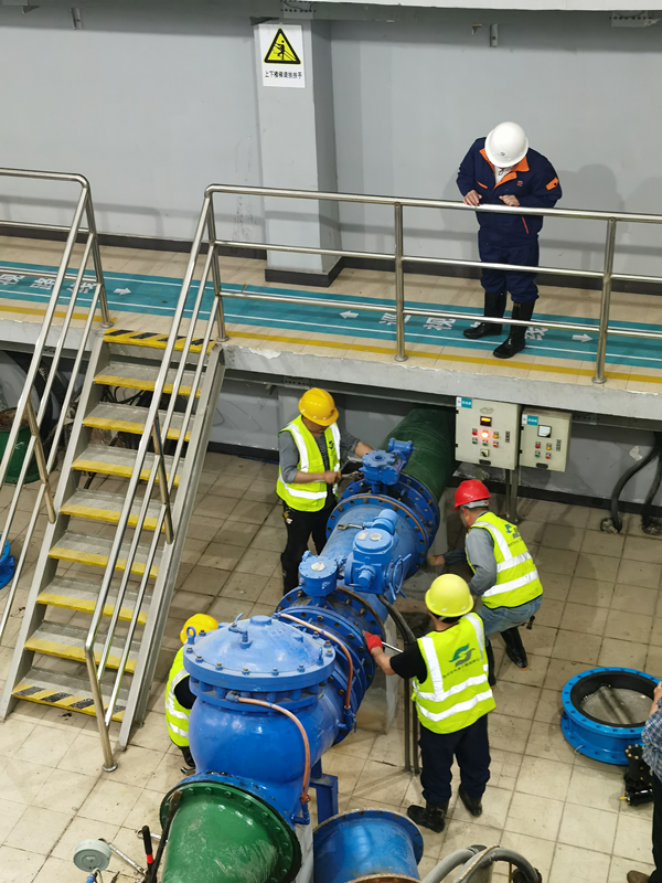凌晨3點半,2號送水機組及所有5臺手動蝶閥安裝完成,燈光照射在機器的漆面上閃爍著耀眼的光澤,仿佛在表達(dá)想要立即投身供水事業(yè)的歡欣。凌晨4點新機組投入試運行,比預(yù)定的時間提前近2個小時。