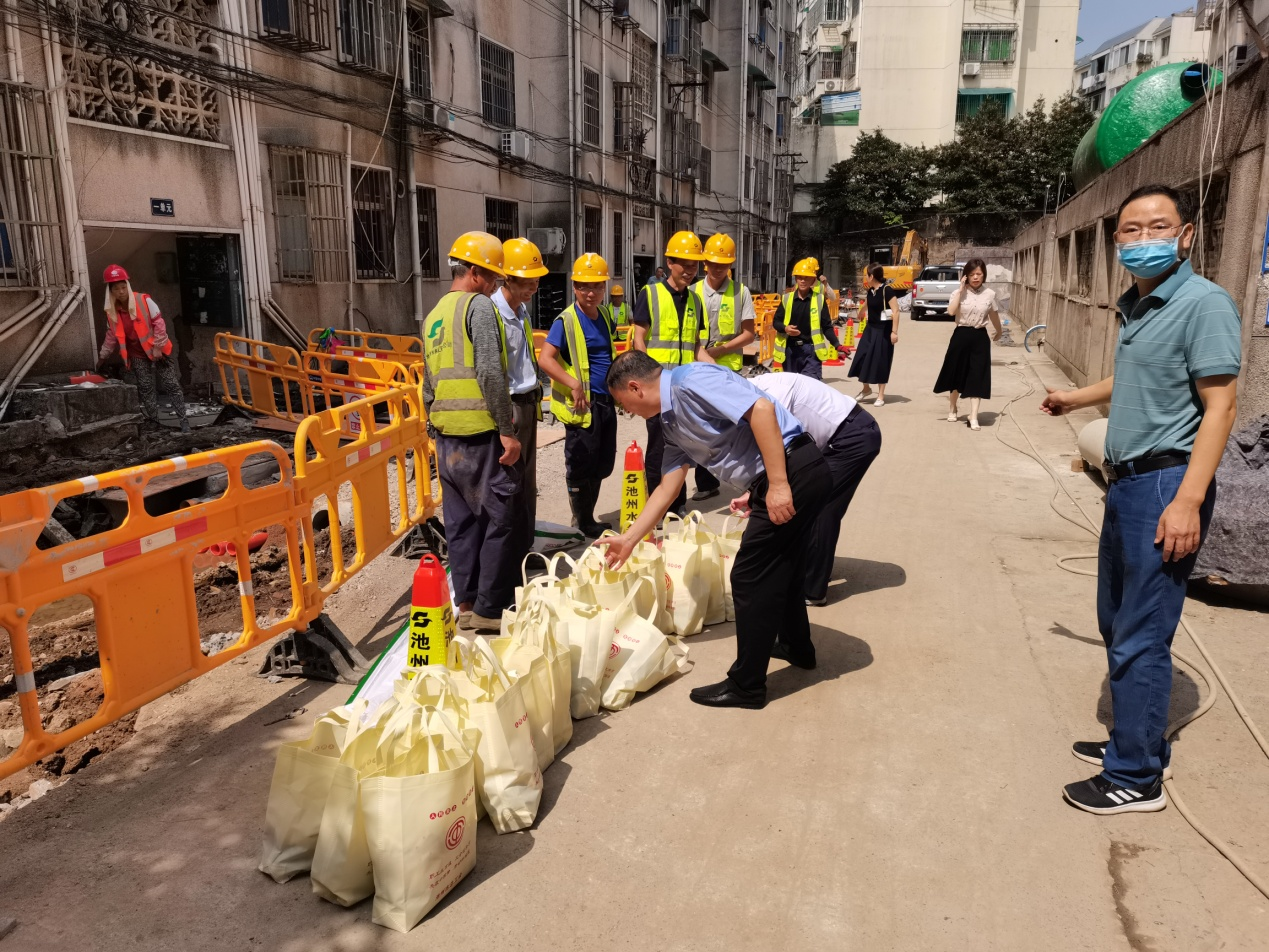 在東湖路花園小區(qū)老舊小區(qū)改造工程施工現(xiàn)場(chǎng),慰問團(tuán)一行給大家送上防暑降溫慰問品,感謝施工作業(yè)人員在高溫下堅(jiān)守工程一線,為池州市老舊小區(qū)改造工程辛苦勞作,揮灑勤勞的汗水。