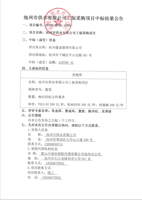 池州市供水有限公司工裝采購項目中標(biāo)結(jié)果公告 | |