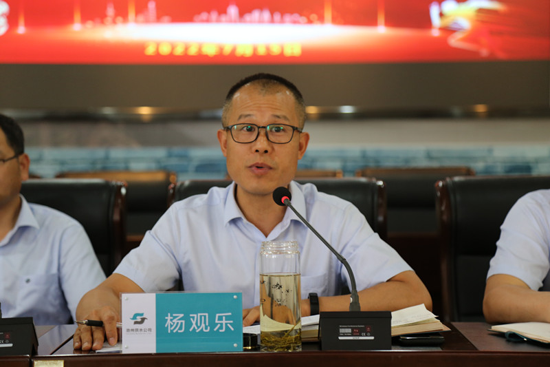 李張兵指出,2022年上半年,公司堅(jiān)持以習(xí)近平新時(shí)代中國(guó)特色社會(huì)主義思想為指導(dǎo),深入貫徹落實(shí)黨的十九大和十九屆歷次全會(huì)精神,貫徹新發(fā)展理念、立足新發(fā)展階段、積極融入新發(fā)展格局,扎實(shí)做好了安全生產(chǎn)、供水保障、服務(wù)提升、工程建設(shè)等各項(xiàng)工作,公司運(yùn)營(yíng)穩(wěn)中向好;同時(shí),在深刻分析公司目前面臨的風(fēng)險(xiǎn)挑戰(zhàn)基礎(chǔ)上,他指出,下半年,我們要突出重點(diǎn)工作,抓安全、優(yōu)化營(yíng)商環(huán)境,突出高質(zhì)量發(fā)展,實(shí)施質(zhì)量提升計(jì)劃,突出項(xiàng)目建設(shè),創(chuàng)新黨建引領(lǐng)。