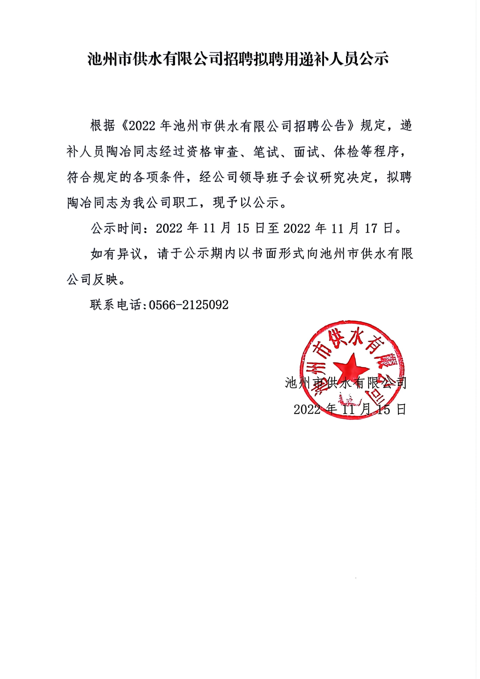 池州市供水有限公司招擬聘用遞補(bǔ)人員公示 | |