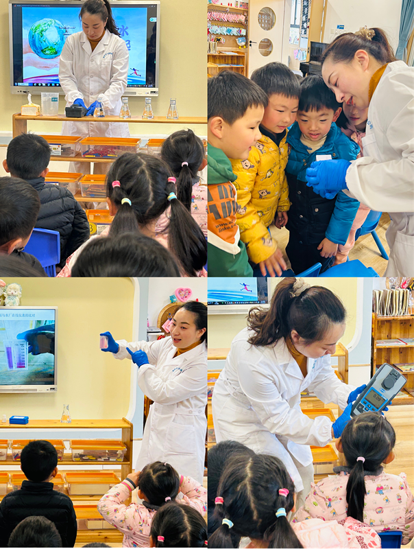 最后鮑平珍為小朋友們演示了趣味小實(shí)驗(yàn),這個(gè)小朋友看看濁度儀的數(shù)值,那個(gè)小朋友看看游離氯測試盒的變色情況,在這熱熱鬧鬧的氛圍下,圓滿完成了這場充滿趣味的課堂活動(dòng)。