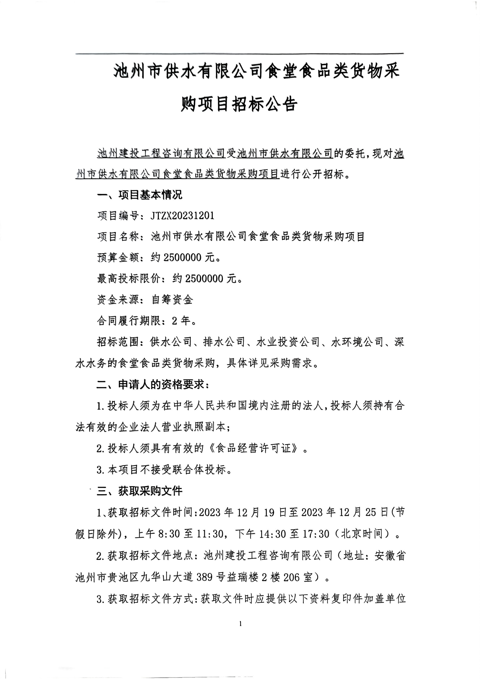 池州市供水有限公司食堂食品類貨物采購項目招標公告 | |