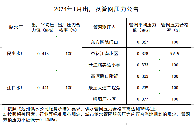 2024年1月出廠及管網(wǎng)壓力公告 | |