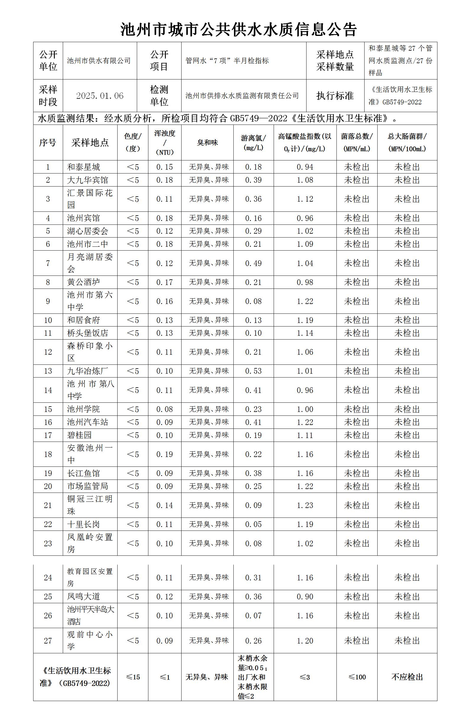 池州市城市公共供水水質(zhì)信息公告管網(wǎng)水“7項(xiàng)”半月檢指標(biāo)1-1 | |
