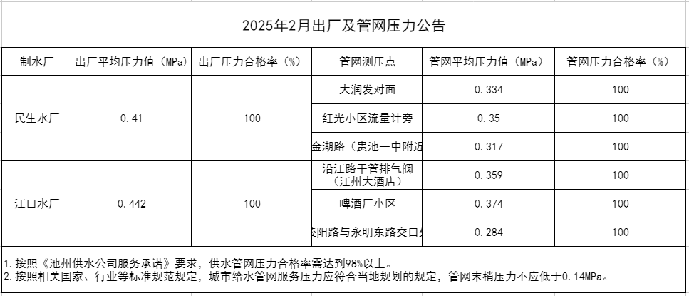 2025年2月出廠及管網(wǎng)壓力公告 | |