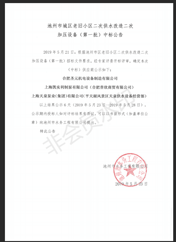 池州市城區(qū)老舊小區(qū)二次供水改造二次 加壓設(shè)備(第一批)中標(biāo)公告 | |