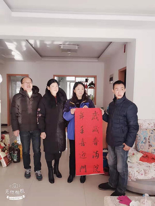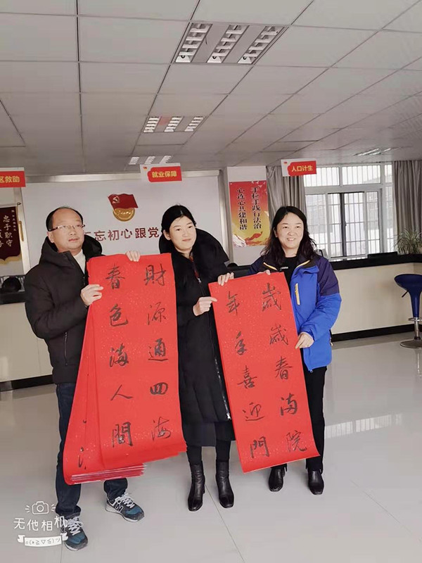 隨后,王副總一行又來(lái)到東湖路社區(qū)居委會(huì)。王副總送上公司精心準(zhǔn)備的手寫對(duì)聯(lián)及社區(qū)幫扶共建資金,并與趙書記進(jìn)行了友好交流與溝通。