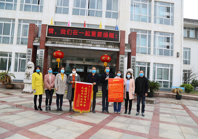 ——平天湖社區(qū)支部、居委會(huì)給池州供水公司送來旌旗