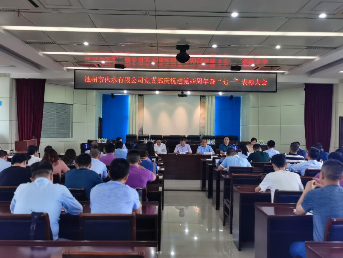6月29日下午,池州市供水有限公司黨支部隆重舉行慶祝中國(guó)共產(chǎn)黨成立99周年暨“七一”表彰大會(huì)。市建投集團(tuán)黨委副書記方長(zhǎng)根同志、水業(yè)公司黨支部書記兼供水公司總經(jīng)理李張兵同志應(yīng)邀出席。公司全體黨員、發(fā)展對(duì)象、入黨積極分子50余人參加大會(huì)。會(huì)議由組織委員王忠榮同志主持。