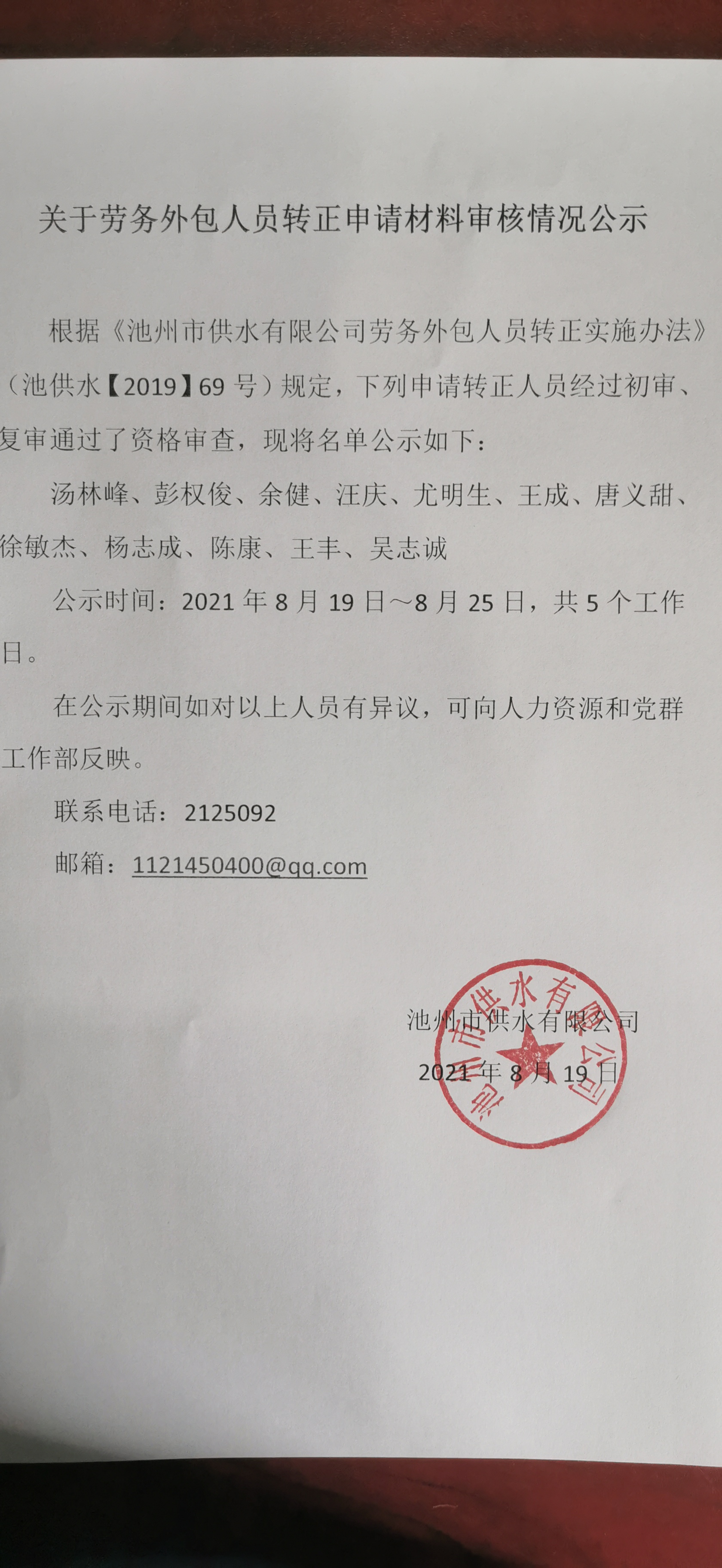 外包人員轉(zhuǎn)正申請(qǐng)材料審核情況公示 | |