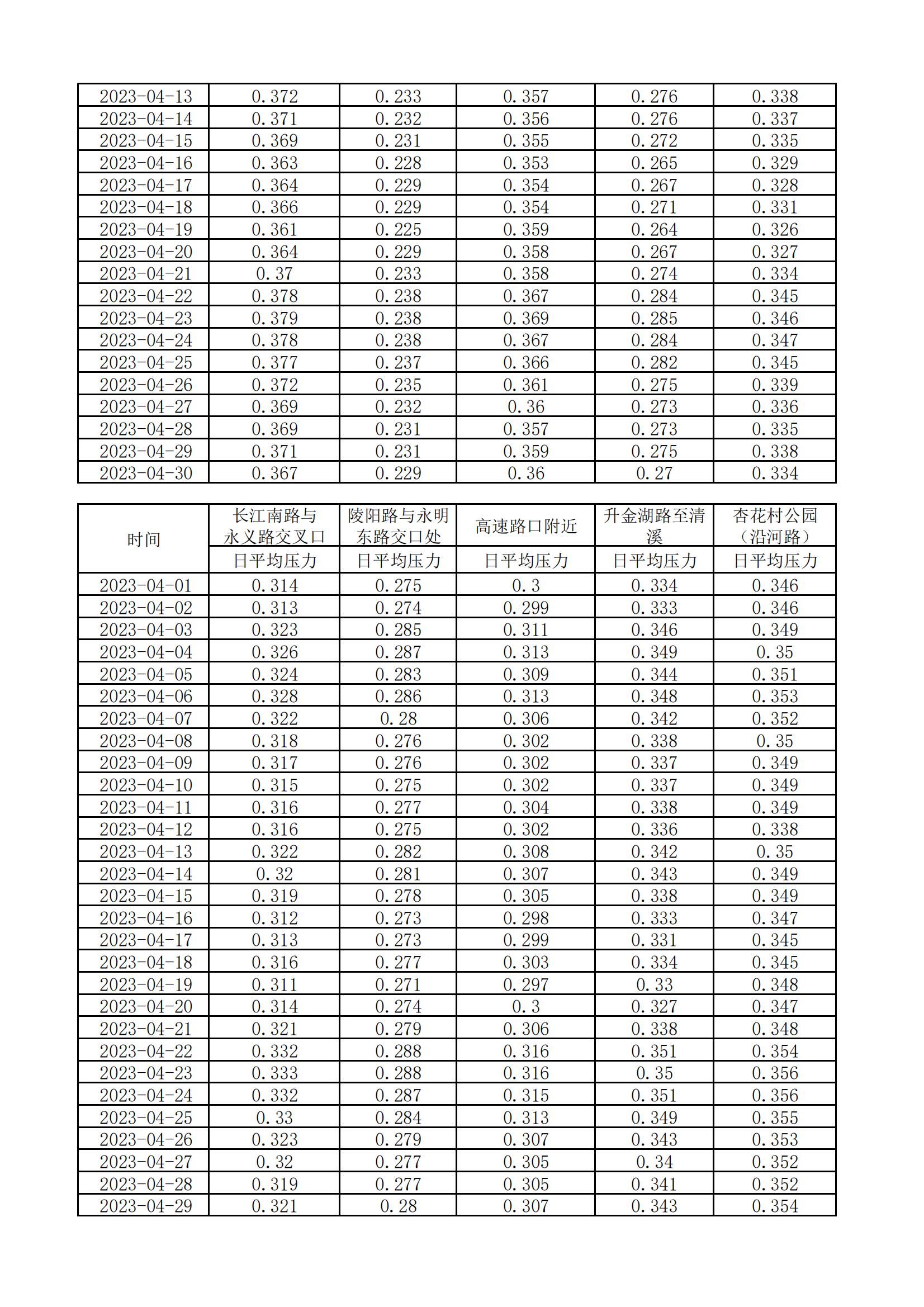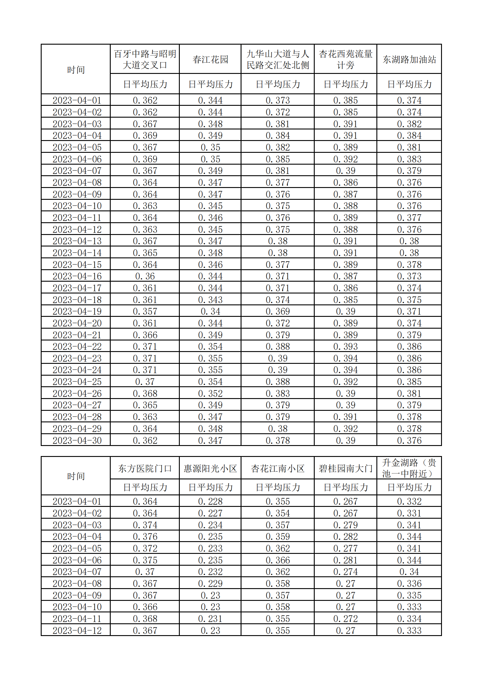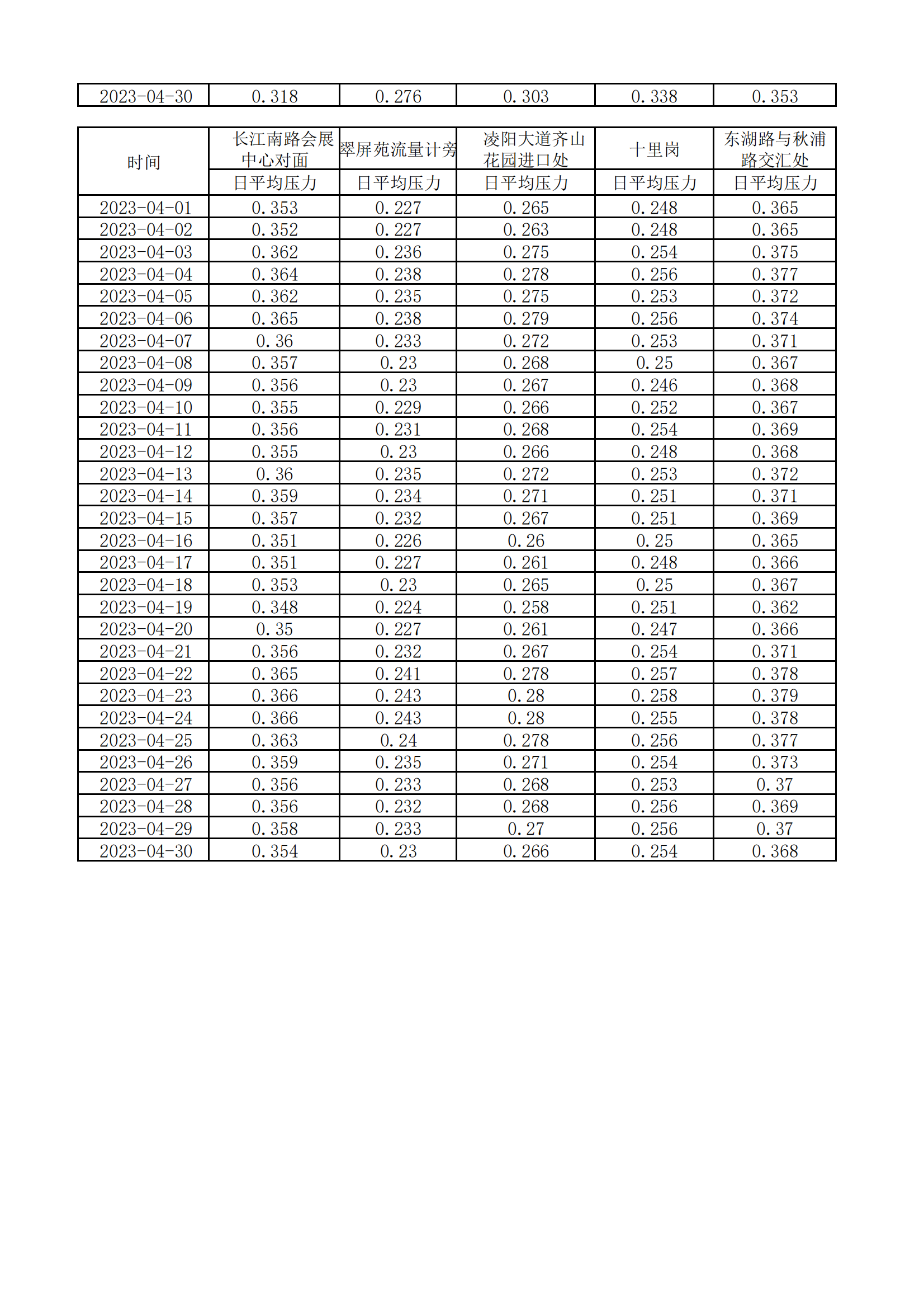 池州市供水有限公司 2023 年4月水壓 公告 | |